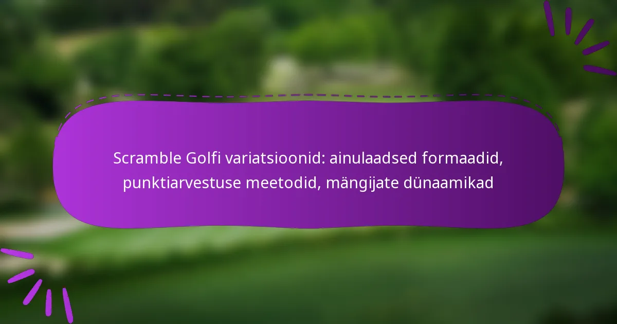 Scramble golfi variatsioonid tutvustavad põnevaid meeskondlikke formaate, mis soodustavad koostööd ja strateegilist mängu osalejate seas. Erinevad skoorimisviisid ja unikaalsed reeglid rikastavad konkurentsikogemust, pakkudes samas mängu kõigi oskustasemete mängijatele. Meeskonnatöö ja suhtlemise dünaamika on hädavajalikud, kuna iga liige panustab meeskonna üldisesse edusse ja mängu nautimisse.
